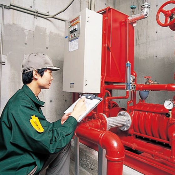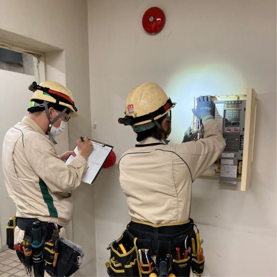 消防計画等による建物の運⽤が防⽕管理者により適正に⾏われているか、当社の防⽕対象物点検資格者が点検を⾏います。(年1回実施)