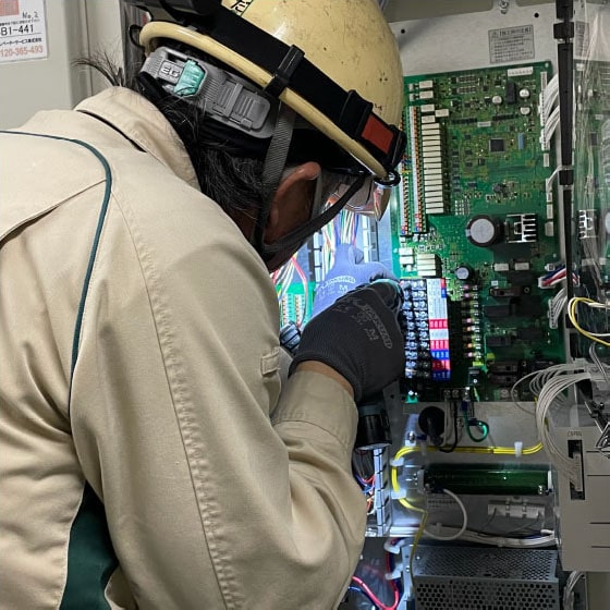 リニューアル工事の際は、現状システムの仕様、エレベーター管制など他設備機器とのインターフェイスを正確に把握し施工計画を立てます。