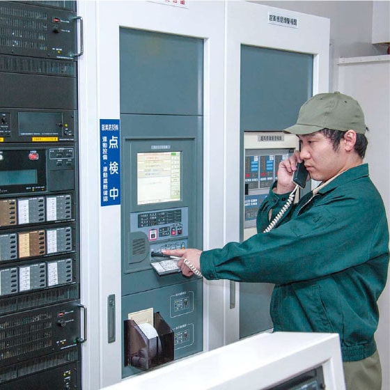 感知器からの火災信号が正しく受信され、他の設備に着実に移報されることを試験します。火災受信機は中央管理室における最重要機器なのです。
