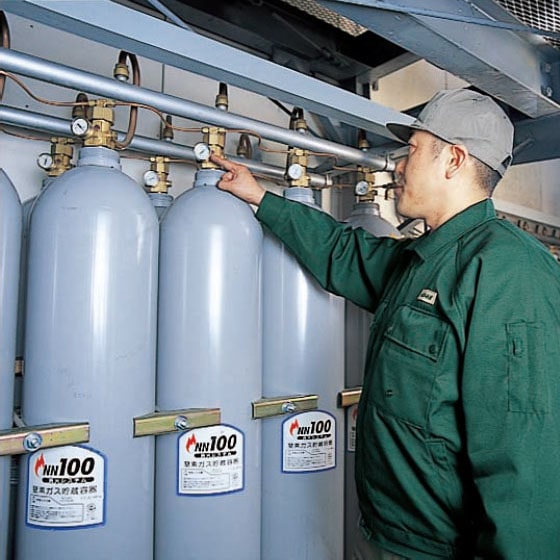 ガス消火ボンベの圧力測定