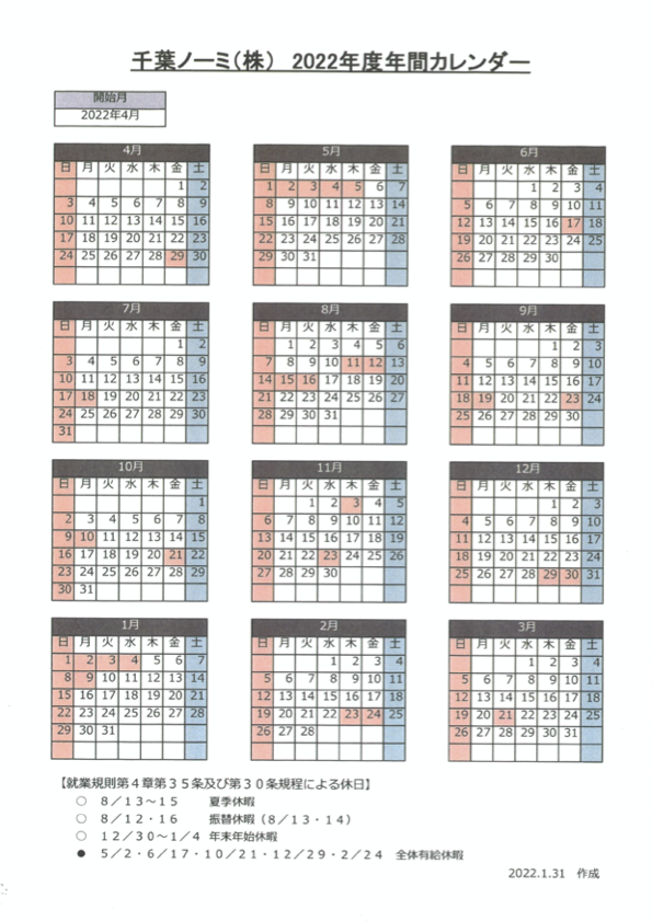 2022年度(~2023年3月31日)の弊社休業日のお知らせ